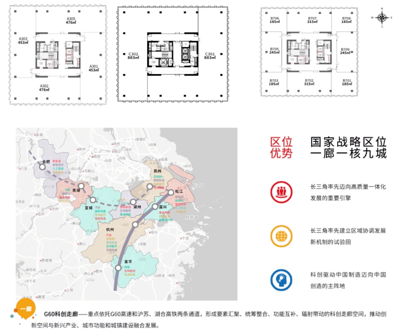 產(chǎn)業(yè)園占地面積34畝,加上附贈面積可達(dá)62畝,總建筑規(guī)模52076.5㎡,由3棟獨(dú)立的10層建筑組成(地下1層地上9層,其中1層至7層層高5.4米,8至9層層高4.2米),建筑荷載400kg/㎡。