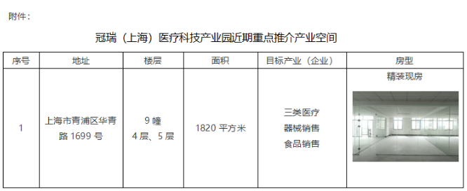 冠瑞(上海)醫(yī)療科技產(chǎn)業(yè)園場地租賃及租金