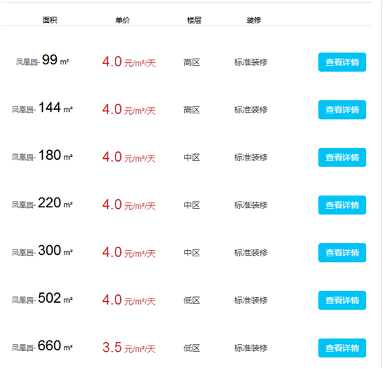 鳳凰園寫字樓有多大面積出租?