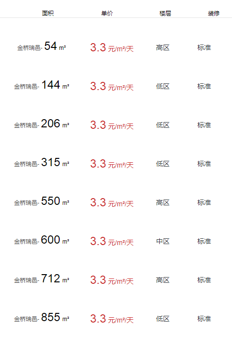 金橋瑞邑辦公室出租及租金
