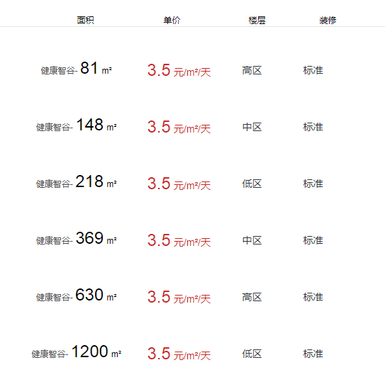 健康智谷辦公室出租及租金