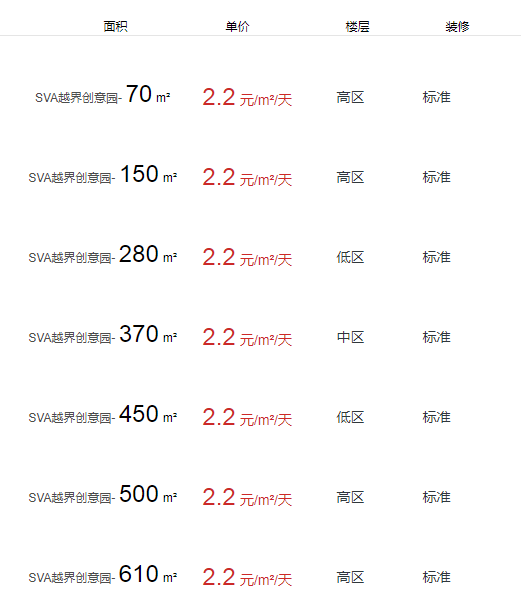 SVA越界創(chuàng)意園辦公室出租及租金