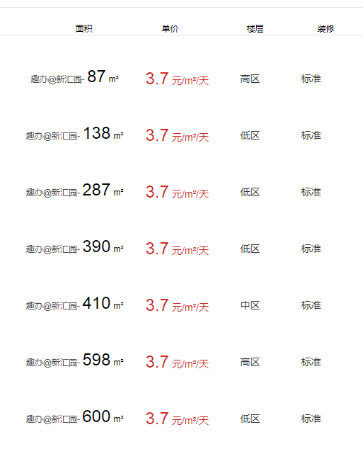 趣辦@新匯園園區(qū)參數(shù)
