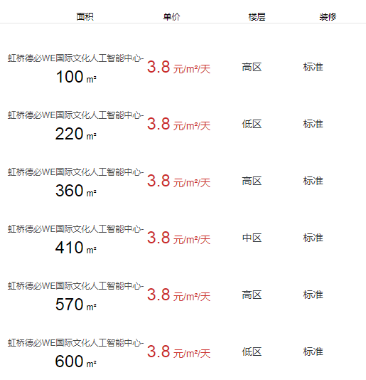 虹橋德必WE國(guó)際文化人工智能中心辦公室出租及租金