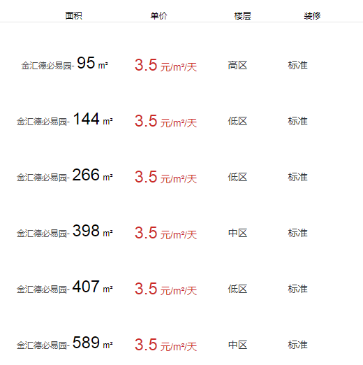 金匯德必易園辦公室出租及租金