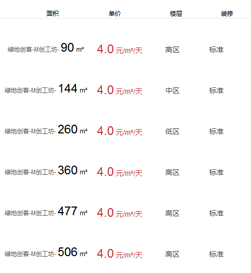 綠地創(chuàng)客-M創(chuàng)工坊辦公室出租及租金