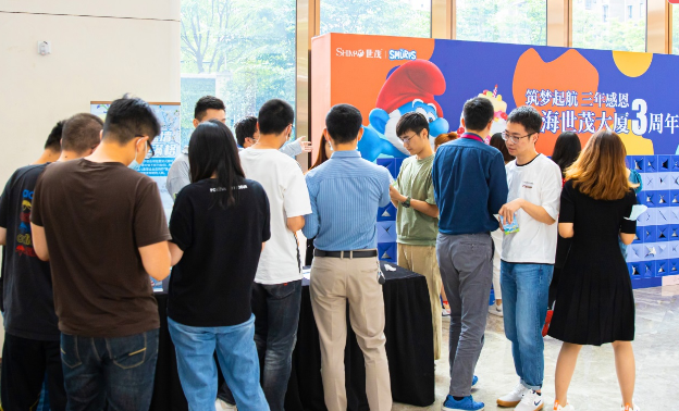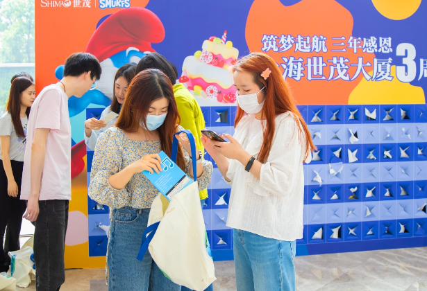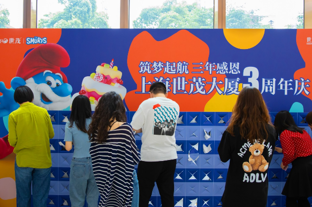 5月28日,上海世茂大廈迎來了三周年慶,寫字樓大堂的巨型盲盒墻使平日行色匆匆的白領(lǐng)紛紛駐足,探尋藏在盲盒中的無限驚喜。同時(shí),世茂大廈裙樓商業(yè)濱江世茂52+帶來“DREAM SMURF”藍(lán)精靈首次中國公益巡展,為濱江人民的休閑娛樂生活再添新鮮活力。