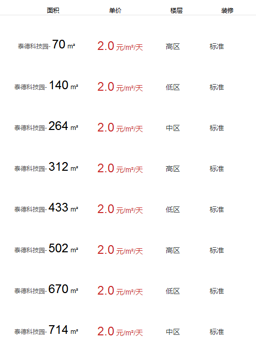 泰德科技園辦公室出租及租金