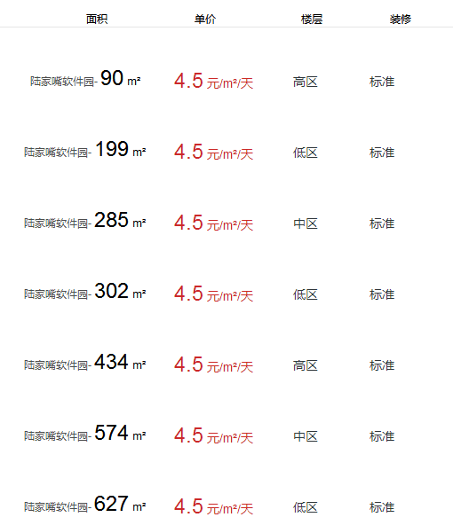陸家嘴軟件園辦公室出租及租金
