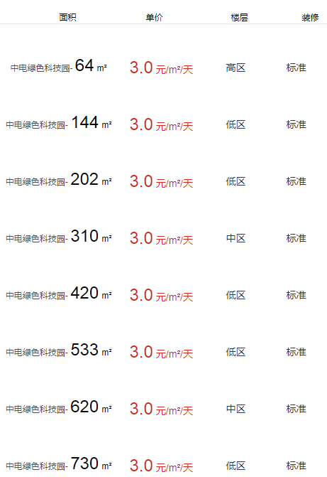 中電綠色科技園有面積出租嗎?