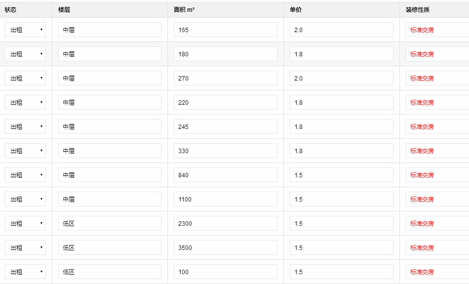 租金范圍:1.5-2.0