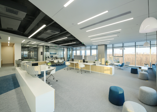 辦公空間:標(biāo)準(zhǔn)層面積約為2450㎡,得房率高達74%,層高約4.4米,配備約120mm架空地板,樓板承重不小于2.0KN/㎡。
