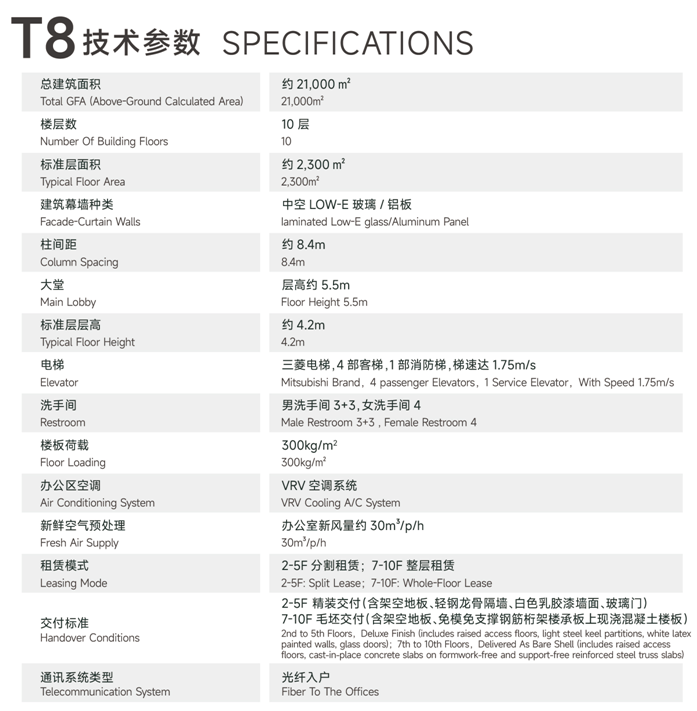 8棟甲級總部辦公樓,整棟建筑面積約7,000-23,000平方米;通過整棟辦公、整層辦公、精裝單元辦公打造多元辦公方式。