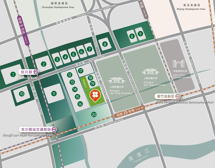 15號線近鄰紫竹高新區(qū)站,直連上海南站。