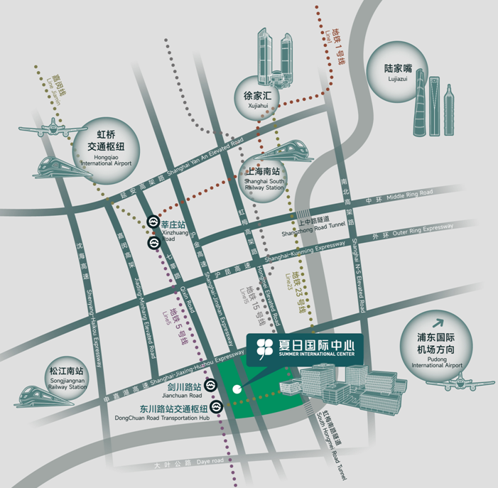 高 架:虹梅高架,快速連接閔行區(qū)和徐匯區(qū)。嘉閔高架,實現(xiàn)嘉定新城與虹橋商務(wù)區(qū)、閔行區(qū)快速聯(lián)通。