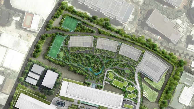 常在森林地面上發(fā)現(xiàn)的耐蔭物種被選擇用于該區(qū)域以確保森林的長(zhǎng)期生長(zhǎng)。此外,娛樂(lè)項(xiàng)目,如足球場(chǎng),籃球