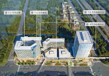 項目占地近3.3萬方,分南北兩個地塊,由12棟建筑組成。涵蓋了標準寫字樓、獨棟辦公、體驗式商業(yè)街區(qū)、全齡公寓酒店、P+R停車場。總建筑面積約16萬方,包括約5.6萬方辦公面積、約1.4萬方商業(yè)面積和約3.2萬方酒店面積,其中酒店為開發(fā)商自持,未來會以心地輕奢公寓,輕迎青年公寓,活力頤養(yǎng)公寓三大品牌類型服務(wù)于各年齡層的客戶群。