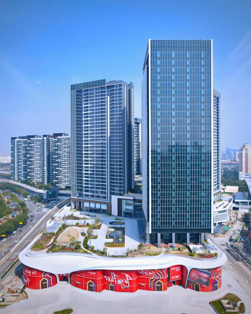 • 商業(yè)業(yè)態(tài):1-4 層裙樓商業(yè)(總建面約 6.8 萬平方米),分南北兩區(qū)運營,南區(qū) 2025 年底開業(yè),涵蓋生鮮超市、品牌餐飲、休閑娛樂、生活服務,滿足企業(yè)員工日常消費與商務接待;